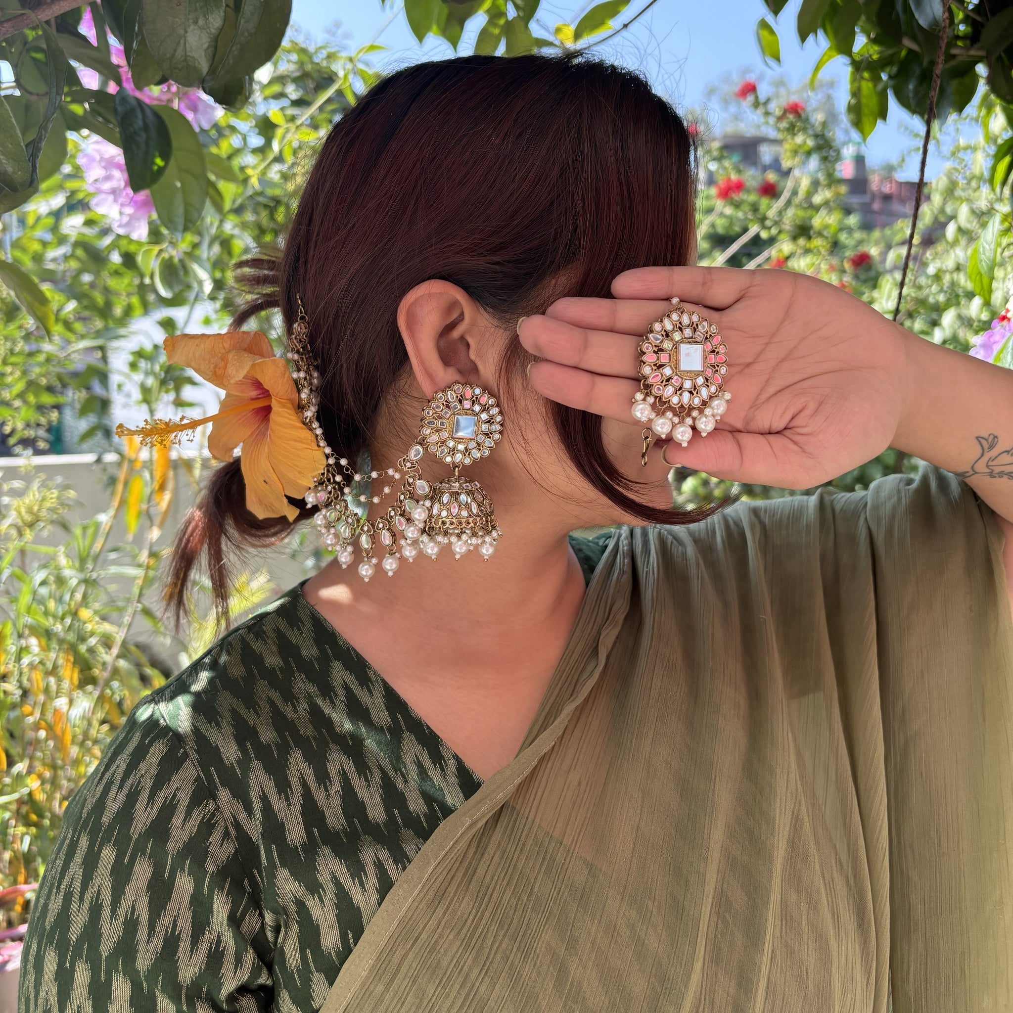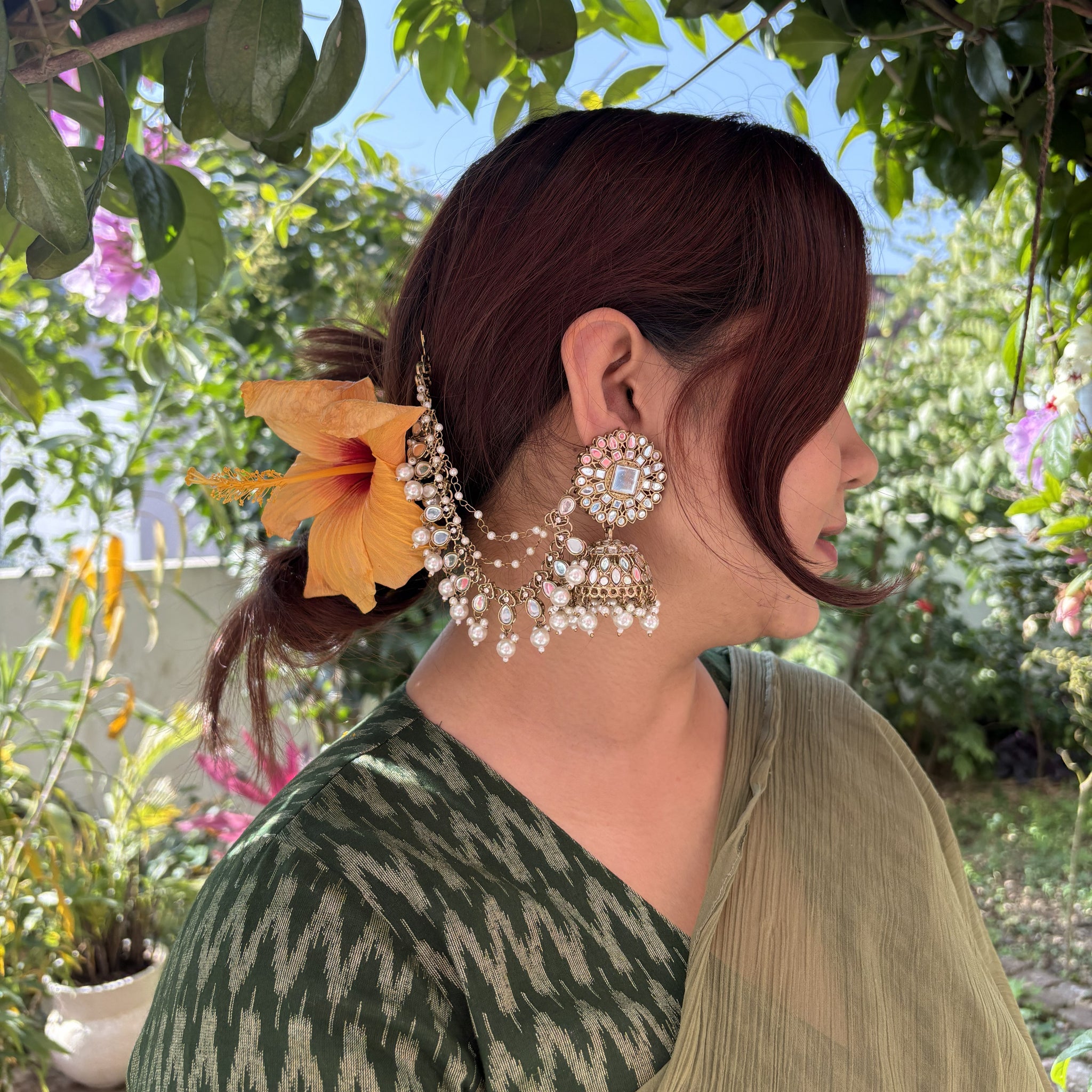 Add a fun and unique touch to any outfit with our Viral Mang Tikka Earrings with Hair Chain! These trendy earrings come with a stylish hair chain and mang tikka, making them the perfect accessory for any hair style. With high quality materials and an affordable price, you'll want to wear these earrings everywhere!