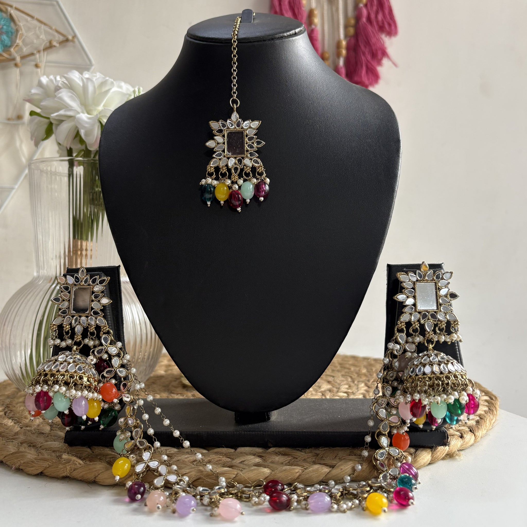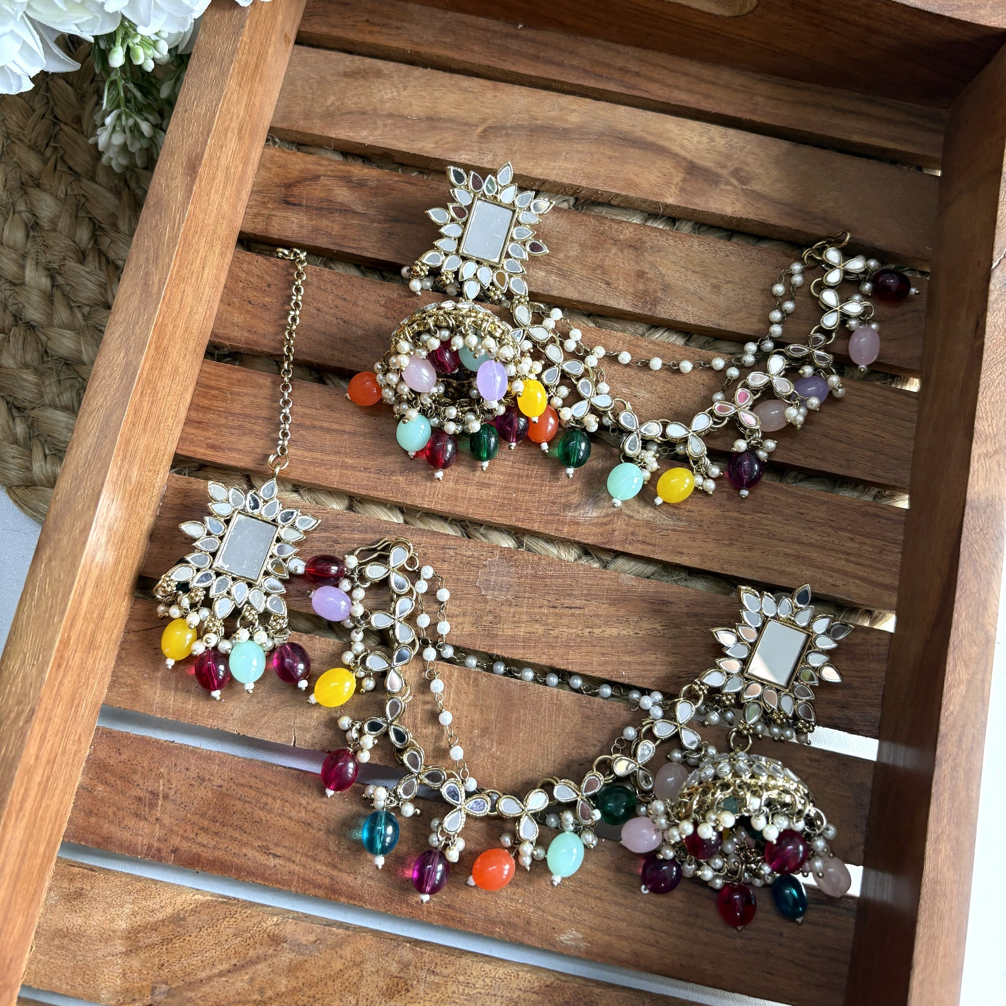 Noor Earrings with Hair chain and Mang tikka (Multi)